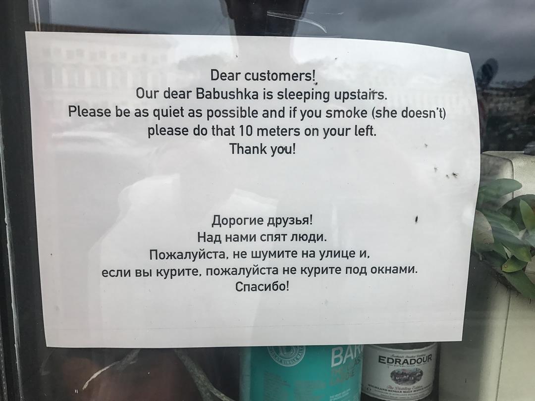 Объявление на двери бара в Санкт-Петебурге