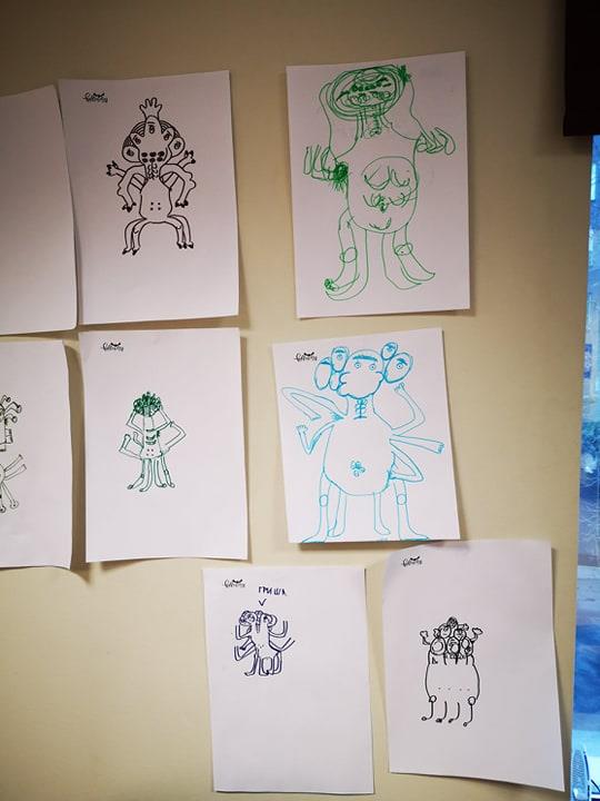 нарисовать своего монстра. Один из учеников вытягивает карточку с названием части тела и бросает кубик, чтобы определить, сколько данных частей тела будет у монстра. Участники рисуют соответствующую часть тела. Затем другой ученик берет следующую карточку и вновь бросает кубик, после чего объявляет участникам что и сколько им рисовать. И т. д.