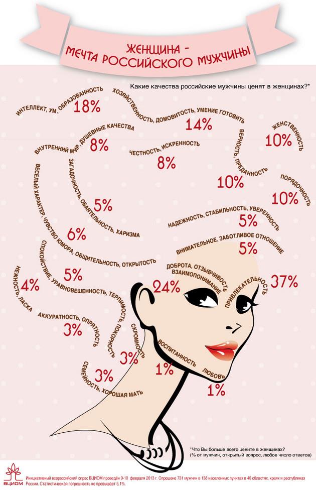 Women's Qualities: Survey Infographics Women's Qualities: Survey Infographics : The survey was conducted by Всероссийский центр изучения общественного мнения The survey was conducted by Всероссийский центр изучения общественного мнения
