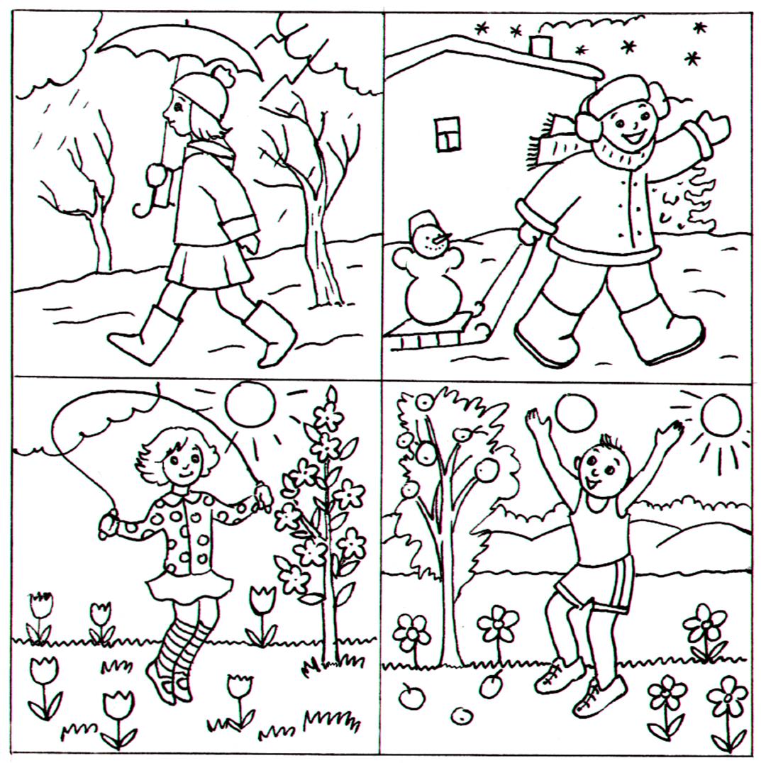 Seasons: Coloring Page Seasons: Coloring Page : Coloring page with pictures of four different seasons Coloring page with pictures of four different seasons
