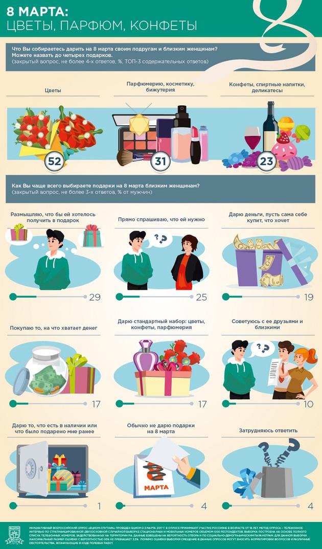 March 8 Gifts: Infographics of a Sociological Survey March 8 Gifts: Infographics of a Sociological Survey : The survey was conducted by Всероссийский центр изучения общественного мнения The survey was conducted by Всероссийский центр изучения общественного мнения